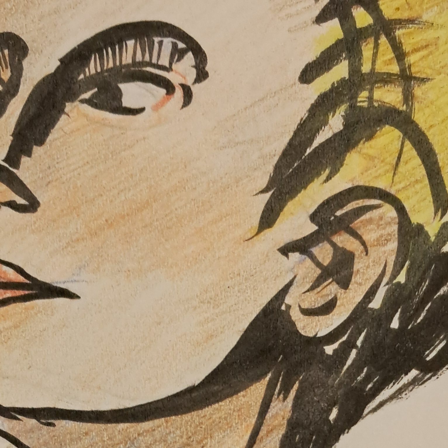 Rotulador pincel Pentel GFKP y lápiz de color sobre papel reciclado 120g
